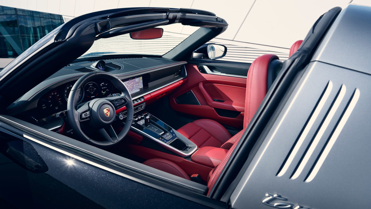 Model 911 Targa imao je premijeru 1965. godine, a nova serija, poput origninala, nema C stub. Umesto toga, B stub se produžava sa jede strane kabine na drugu, sa velikom staklenom površinom koja ima funkciju zadnjeg prozora. Stakleni krov može da se ukloni uz pomoć električnih motora i sklapa se iza zadnjih sedišta za 19 sekundi pritiskom na taster.