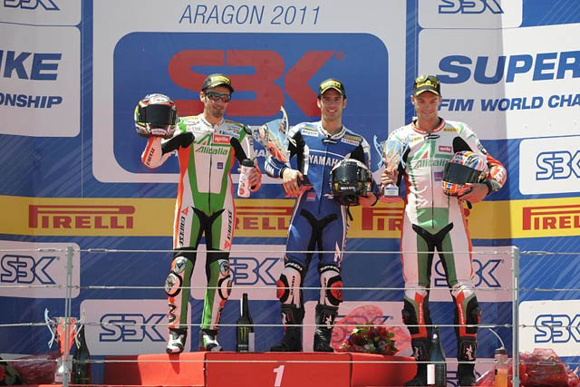Bez opasnosti da će ih Checa sustići Biaggi i Melandri su se dali u taktičku igru forsiranja tempa i čekanja greške protivnika gde je prednjačio Melandri konstantno vozeći na točku. Pritisak novopridošlog vozača je urodio plodom nekoliko krugova pred kraj kada Biaggi odlazi preširoko u ukosnici i Melandriju prepušta vođstvo koje on do kraja trke ne ispušta i ostvaruje treću pobedu ove sezone dok se Melandri zadovoljava sa dvadeset poena. Na poslednji stepenik pobedničkog podijuma se penje Leon Camier na Apriliji.