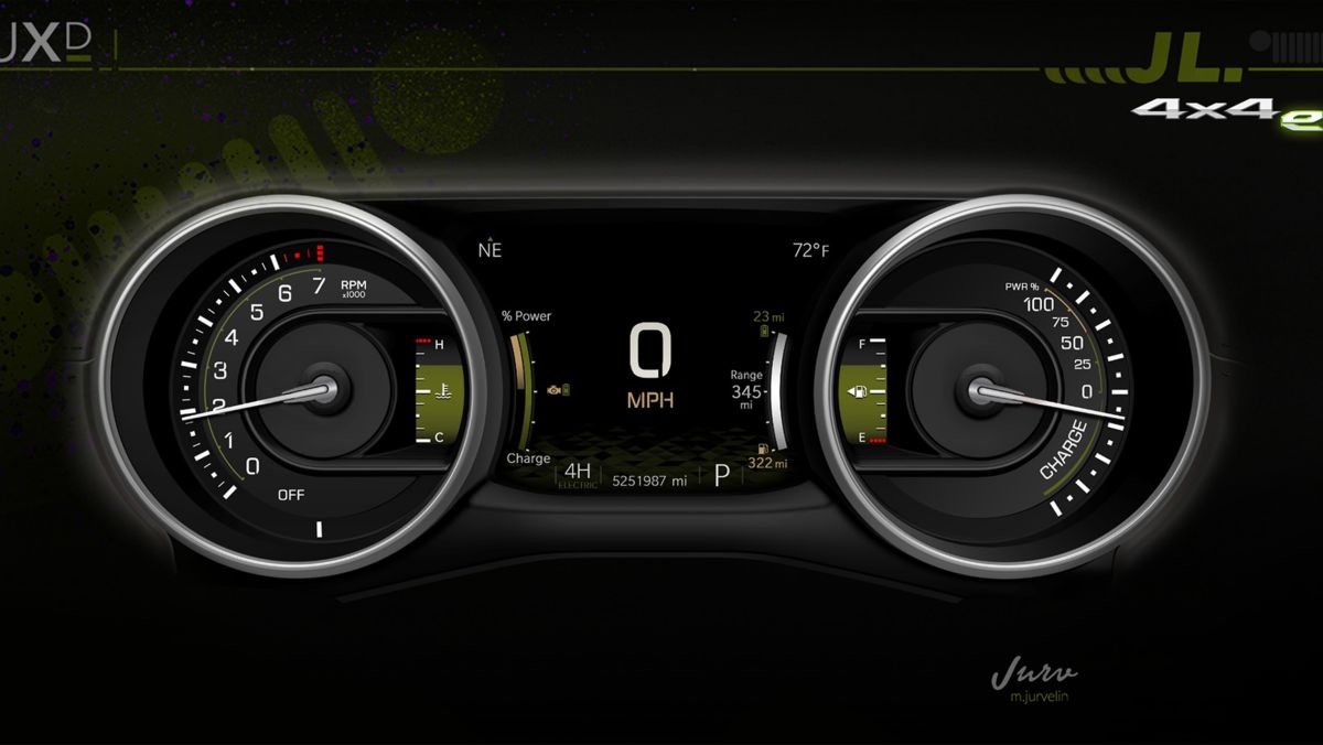 Pogon električnog Wranglera sastoji se od dvolitarskog turbo benzinskog motora sa četiri cilindra, startera-gereratora sa kaišem, baterije kapaciteta 17kWh i električnog agregata smeštenog na prednjem delu menjačke kutije.