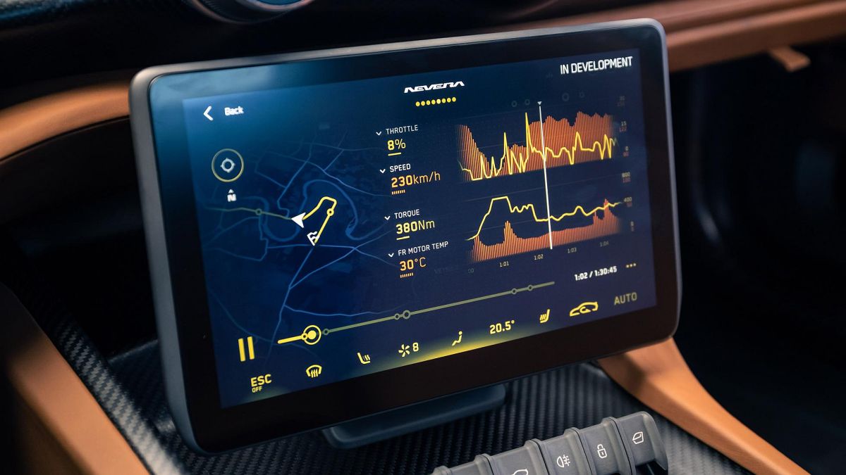 Nevera je opremljena sa 12 ultrazvulnih senzora, 13 kamera, šest radara i NVIDIA Pegasus operativnim sistemom koji povezuje sve komponente. Automobil analizira način vožnje i sugeriše promene audio i vizuelnim naznakama. Podržan je i ugrađenom telemetrijom. Rimac je saopštio da će virtuelni asistent za stazu stići kao softversko unapređenje 2022. godine.