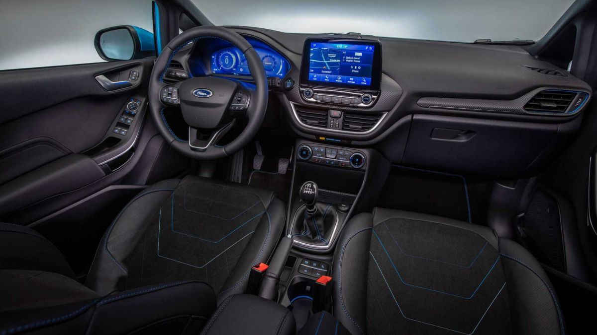Osvežena Fiesta u kabini je dobila digitalnu instrument tablu dijagonale 12,3 inča i kameru na vetrobranu koja sarađuje sa navigacionim sistemom da bi upozorila vozača u slučaju ulaska u pogrešan smer. Fiesta ST je dobila nova sportska sedišta sa boljom bočnom podrškom i integrisanim naslonima za glave.
