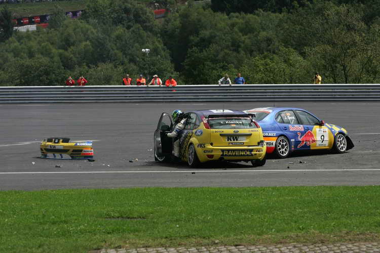 Tradicionalno, Eau Rouge je bio poprište incidenta u kome su učestvovali Priaulx, Farfus i Dirk Müller, gde je Priaulx bio teže oštećen i morao je da odustane, dok su preostala dva učesnika uspela da nastave sa trkom. Jorg Muller je u prvom krugu obišao Thompsona i Tarquinija, ali je usled problema sa automobilom morao da ode u boks. Sledeći incident je bio između Hennerici i Rydell-a gde je Rydell morao da odustane od trke, a u istom krugu je Thompson otišao u boks zbog problema sa automobilom. U trećem krugu su kontakt imali Klenke i Larini koji ga je udario, pa je Klenke izgubivši kontrolu nad Fordom udario Genea što je dovelo do velikih oštećenja na ta dva automobila tako da je na stazu izašao “safety car”.