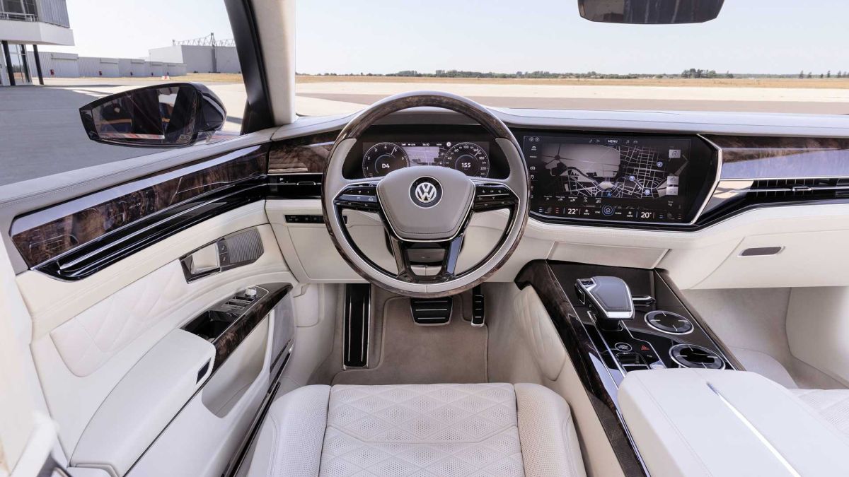 U luksuznoj kabini je obilje prostora za noge na zadnjim sedištima, koja su individualna i razdovijena centralnom konzolom. Na njoj je tablet koji može da se skine, kao i prekidači za podešavanje sedišta. VW je izdašno koristio drvo i kožu u kabini, a ugrađan je i dvodelni panorama krov sa posebnim sistemom za zabavu za putnike u zadnjem delu.