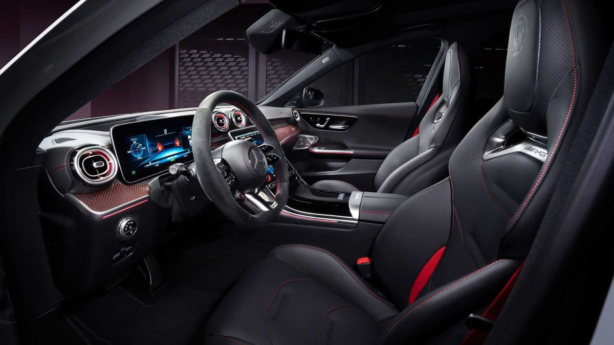 Kabina je dobila AMG Performance sedišta sa crnom napa kožom i crvene šavove sa AMG amblemima na naslonima za glavu. Upravljač je tapaciran kombinacijom kože i platna, pojasevi su crveni, a tepisi imaju F1 logo. Automobil se dobija sa pokrivačem sa F1 logom, a unutrašnja strana je umekšana da ne bi ogrebala karoseriju.