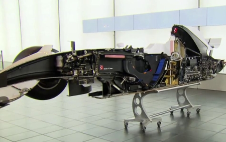 Dve godine je bilo potrebno inženjerima da ovaj projekat sprovedu u delo. Po prvi put fanovi imaju prilike da se uvere šta se to nalazi ispod oplate bolida i to celom dužinom bolida. Kada se bolid rastavi prvo što se primećije koliko su komponente nisko pozicionirane kako bi centar gravitacije bolida bio što bliži zemlji. Menjač, sistem kvailčila, kao i sam motor su smešteni toliko nisko i pomereni ka zadnjem delu bolida opet sa ciljem da se centar gravitacije spusti što niže. Interesantno je i koliko je rezervoar udaljen od leđe vozača, ta razdaljina iznosi svega 50-tak mm. Položaj koji vozač mora imati je zaista impresivan. Trke F1 traju skoro dva časa pa sam položaj opravdava zašto vozače F1 bolida zovu modernim gladijatorima, pored svih borbi koje vode u toku trka, naravno. Sigurnosna komponenta je zaista dosta bitna u F1 i tokom prethodnih godina je dosta uznapredovala. Šasija bolida je saćaste strukture i napravljena je od karbona, što joj daje izuzetnu čvrstoću, ali i ono što je neophodno za dobre performanse F1 bolida, a to je mala težina.