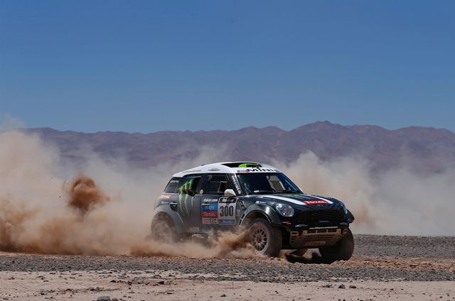 Kod automobila, Roma je pokušao da taktizira i kontroliše Peterhansela, međutim dva pucanja gume na ultra brzoj etapi su ga koštale dosta vremena, tako da je trećinu svoje prednosti izgubio stigavši sa 8 minuta zaostatka za timskim kolegom. Pobedu na etapi je zabeležio Al Atija ispred Peterhansela, dok je treći Sainc.