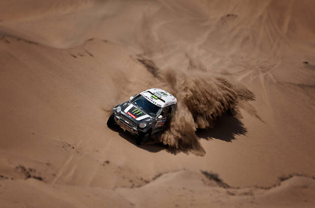 U kategoriji automobila je konfuzno. X-Raid tim je najavio da su dali naredbe vozačima da zadrže svoje pozicije kako bi sprečili direktne okršaje između timskih kolega u završnici. Naredbe nisu baš imale efekte na tempo Rome, Peterhansela i Al Atije. Etapnu pobedu je osvojio Peterhansel sa skoro 4 minuta prednosti u odnosu na Al Atiju, dok je Roma etapu završio kao treći sa 6 minuta zaostatka. Tokom etape Roma nije obišao Peterhansela iako je francuz davao šansu svom kolegi da se vrati ispred njega tako da je Peterhansel sada vodi u generali sa 26 sekundi u odnosu na Romu. Treće mesto u generali drži Al Atija, dok je de Vilijers na četvrom mestu sa 25 minuta zaostatka. Teranova se zaglavio na etapi tako da je izgubio četvro mesto u generali i pred poslednju etapu ima 6:44 minuta zaostatka za vozečem Tojote.