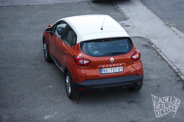 U praksi, Captur je mešavina SUV i MPV vozila, a dosta elemenata karoserije prosto upućuje na blisko „srodstvo“ sa aktuelnom Clio generacijom. Solidan klirens (170mm) naslućuje da bi Captur možda i mogao povremeno da se nađe van asfalta, mada po tom pitanju zaista treba biti vrlo konzervativan i ne pokušavati više nego što bi ste se usudili za volanom klasičnog putničkog automobila.
