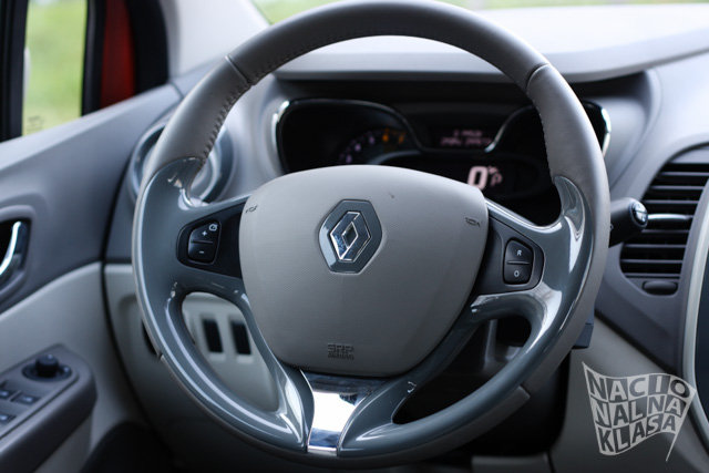 Captur je pored Clio donjeg postroja dobio i Clio enterijer koji je vrlo moderan i funkcionalan. Testirani automobil je bio u nežnoj bež boji i sa odgovarajućom bojom presvlaka, koja je prosto vikala – fleke u najavi! Međutim, kada smo malo bolje zagledali shvatilo smo da je i Renault tako nešto predvideo pa se presvlake veoma lako mogu skinuti i staviti na pranje što će značajno olakšati život onima koji u kolima imaju malu decu ili odrasle, ali nemarne, članove porodice.