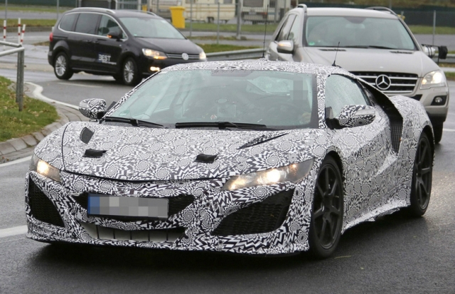 Kamuflirani serijski prototip Honde NSX snimljen je na stazi Nirburgring, a portparol japanske kompanije potvrdio je da je reč o programu razvoja i testiranja ovg hibridnog modela uoči premijere 2015. godine.