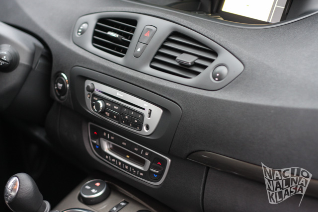 Ostatak konzole je u tipičnom Reno stilu, sa dve grupe komandi – jedna za audio sistem, a druga za digitalni dvozonski klima uređaj. Podrška za BT konekciju sa telefonom je, tradicionalno, veoma laka i brza tako da je pravo uživanje koristiti ovaj sistem.