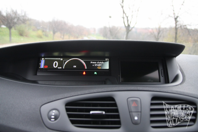 Nova komandna tabla, koju smo već videli kada smo vozili Grand Scenic, zahteva malo privikavanja pogotovu kada noću ispred vozača nema ama baš nikakvog izvora svetla – svi pokazivači se nalaze na sredini konzole. Pokazivači su u potpunosti digitalni i nude prikaz svih potrebnih informacija na moderan i veoma pregledan način.
