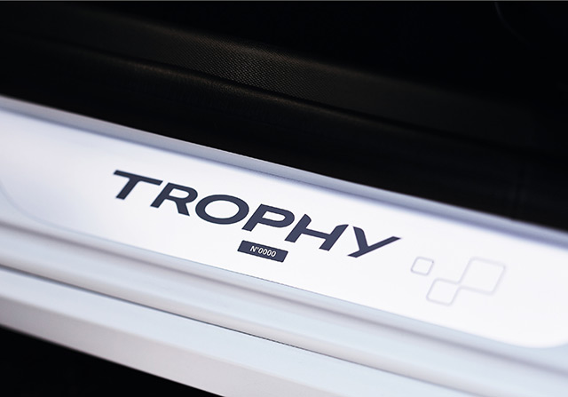 Trophy modeli poseduju paket dodataka kada je u pitanju oprema enterijera vozila: grejana kožna sportska sedišta sa integralnim naslonima za glavu, karbon „look“ za elemente na konzoli, vratima i centralnom bregu. Opciono se može poručiti RS „telemetrija“ koja će omogućiti snimanje svih potrebnih podataka kada ste na stazi, ali i van nje.