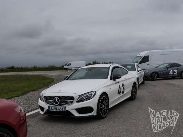 Na „hendling“ poligonu imali smo priliku da isprobamo AMG pripremljene modele: C43 AMG, C63 S AMG, SLC43 AMG, A45 AMG i… AMG GT S! Novi „mini“ AMG modeli sa oznakom 43 imaju po 367KS, dok GT S i C63S imaju daleko potentnije agregate sa po 509KS. Naravno, GT S, kao model koji je u od početka razvijan od strane AMG odeljenja je pokazao koliko je, zapravo, dramatična razlika u odnosu na druge modele koji su takođe sa AMG oznakom. Video snimak, na žalost, nema zvuk. Mikrofon u automobilu nije bio uključen, tako da smo uskraćeni za potmulu grmljavinu V8 biturbo AMG motora.