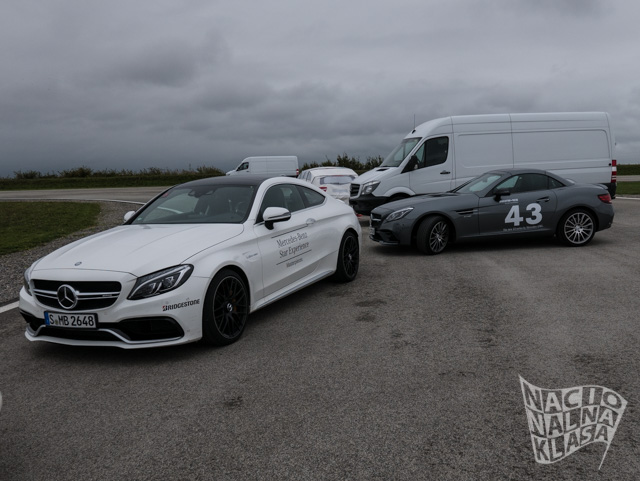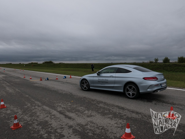Posebno osmišljeni poligon koji je služio da simulira situaciju iznenadnog kočenja i izbegavanja prepreke na putu su demonstrirali brojne sisteme za asistenciju vozaču u novoj E klasi i kupe C klasi.