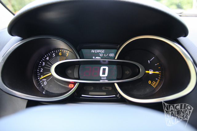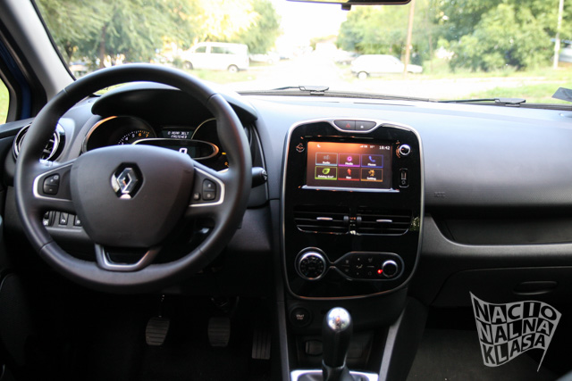 Enterijer, iako četiri godine star, i dalje nudi sasvim moderno okruženje. Centralno postavljeni info zabavni sistem (na raspolaganju je MediaNav Evolution, dok uz doplatu možete poručiti Rlink Evolution) je sasvim adekvatan za uobičajene potrebe – tu su navigacija, Bluetooth, USB konektor.