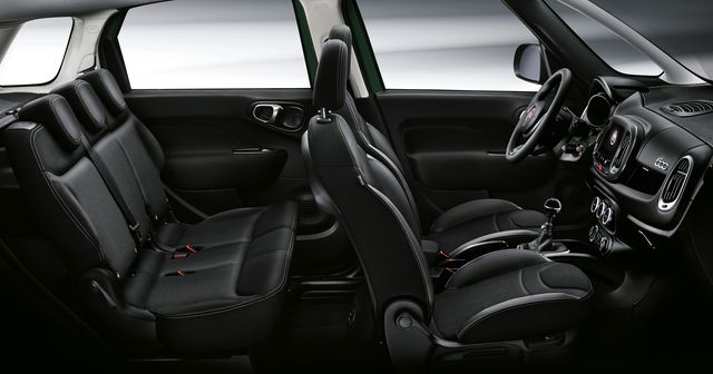 Enterijeri su takođe potpuno novi, počev od dizajna instrument-table. Prostor za putnike je udoban, pogodan, prilagodljiv i ispunjen svetlošću, sa obiljem pažljivo stilizovanih detalja i bogatstvom prepoznatljivih elemenata modela 500. Prostor iza restilizovanog multi-funkcionalnog upravljača, sada sa dodatim hromiranim elementima, unapređenog je dizajna, sa dva okrugla merna instrumenta (brojač obrtaja i brzinomer) na obe strane 3,5-inčnog grafičkog displeja u boji. Vozač takođe ima na raspolaganju inovativni TFT digitalni displej u koloru, sa kompletnim paketom korisnih informacija. Pored toga, na novom modelu 500L primenjen je inovativni koncept sa staklima sa svih strana, kojim se poboljšava osećaj kontrole nad putem, te olakšava parkiranje, pored postizanja vidljivosti koja je najbolja u klasi, a zahvaljujući zastakljenom A stubu.