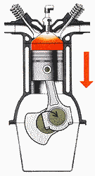 3. takt: Ekspanzija (iskra svečice pali smesu, a gasovi se šire potiskujući klip)