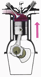 Od stepena kompresije znatno zavisi energija koju dobijamo sagorevanjem smese, a njegovim povećanjem (do izvesne granice) raste i snaga motora. Posledica sagorevanja smese je povećanje zapremine gasova unutar cilindra. Ova ekspanzija pokreće klip prema dole, a on posredstvom klipnjače okreće kolenasto vratilo (radilicu). Ovo pravolinisko kretanje klipa pretvara se u kružno koje se potom predaje prenosnom mehanizmu, a na kraju točkovima. Da bi motor mogao pravilno "disati", tj. usisavati smesu u cilindar i izbacivati iz njega produkte sagorevanja, brinu se ventili. Postoje dve vrste ventila: usisni i izduvni, a ritam njihovog otvaranja i zatvaranja diktira broj obrtaja motora koji se menja obzirom na to koliko je pritisnuta papučica gasa. Moderni motori radi bolje razmene gasova imaju više ventila po cilindru. Tako dva usisna i dva izduvna ventila jednom (četverocilindričnom) 16-ventilskom motoru omogućavaju znatno bolje "disanje", a time i ostvarivanje veće snage u poredjenju s klasičnom (dvoventilskom) verzijom.
