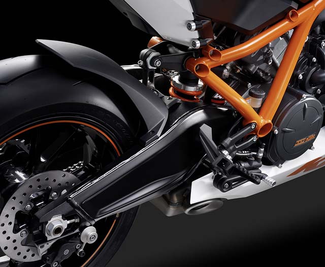 Za naleganje na asfalt su se pobrinuli holandski specijalisti WP opremivši ovu mašinu potpuno podesivim ogibljenjem čiji su klipovi obloženi titanijum radi veće izdržljivosti i manjeg trenja, dok se za kočenje pobrinu Brembo opremivši austrijanca vrhunskim diskovima napred prečnika 320mm i radijalnim četvoroklipnim kočionim čeljustima izrađenim od jednog bloka aluminijuma.