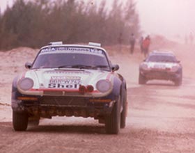1987. godine Pežo se priključuje Dakar avanturi nakon ukidanja klase B u Svetskom Reli Šampionatu. Francuski proizvođač je pobedio dva puta sa modelom 205 i tri puta sa modelom 405. Pežo je imao prednost posedovanja resursa koji nisu do tada korišćeni na Dakar reliju i time demolirao konkurenciju: dva terenska vozila 4×4, tri veoma brza 4×4 kamiona i sedam 6×6 kamiona za podršku, 40 mehaničara koji su prevoženi avionoam i fantastična vozačka postava: Ari Vatanen i Jacky Ickx. Posle ovakvog niza Pežoovih pobeda, njihovim primerom se vode i Citroen, Mitsubishi i Lada čime se pojavljuju „duguljasti“ trkački automobili koji su mogli da pređu 200km/h.