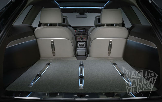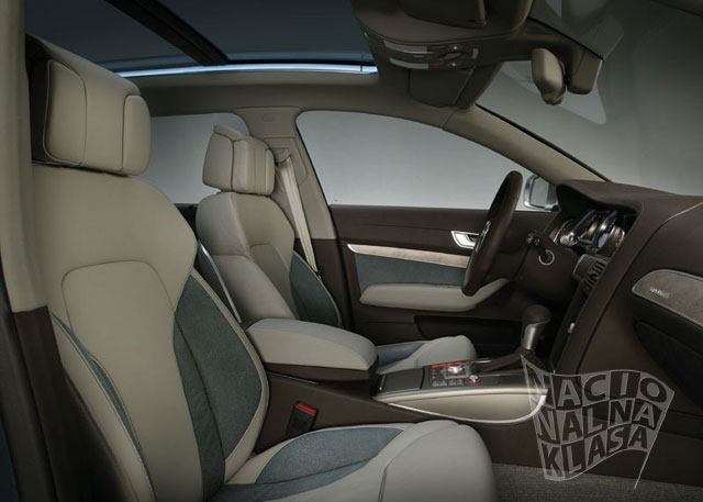 Obloge na centralnom panelu i vratima imaju metalizirani tekstil što daje specifičan kontrast u odnosu na kožni interijer. Kožna sedišta sedišta dolaze u dve boje, a istovremeno daju odličan oslonac putnicima, a zadnja sedišta se mogu pomeriti napred kako bi se povećao prtljažni prostor dok se oslonci za ruke mogu sklopiti tako da se postave u pod i formiraju potpuno ravnu površinu koja je nalik onoj iz A6 Avant modela kako bi se prostor za prtljag što bolje iskoristio.