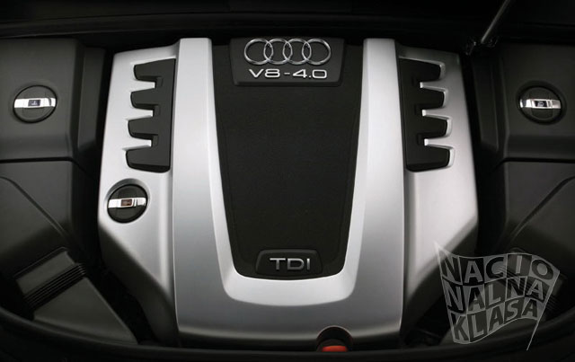 Rezultat je ubrzanje od 0 do 100kmh za 6,4 sekunde i maksimalna brzina od 250kmh koja je ograničena limiterom. Ono što je odlika ovog motora je da omogućava veliku elastičnost i odlično ubrzanje u toku vožnje, npr. Ubrzanje 80-120kmh je samo 4,9 sekundi što je identično modelu S4 koji ima V8 od 4,2l. Ovaj veoma kompaktni V8 sa 32 ventila čiju bregastu i pumpu za ulje pogoni preko lanca ima veoma male dimenzije: dužina je samo 516mm, a težina je 259kg što je jedan od najlakših V8 dizela na svetu.