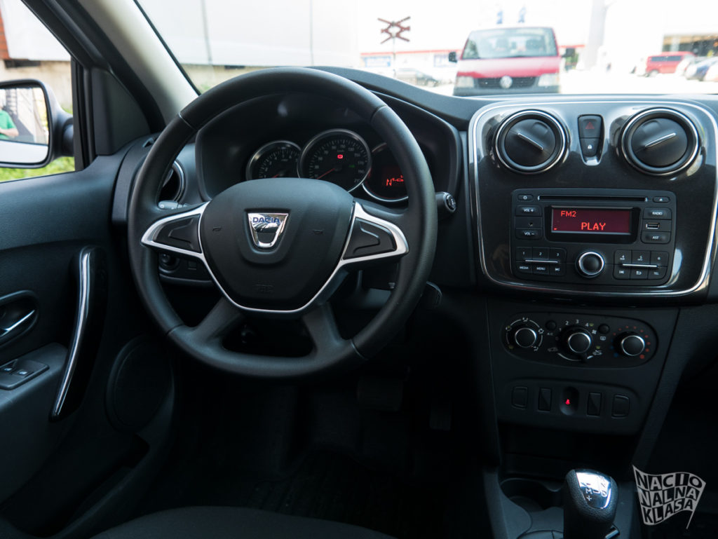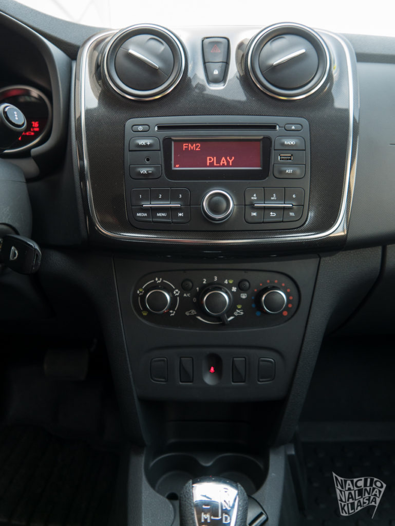 No, iako nema „ekrana“ osnovne i sada gotovo podrazumevane stvari su tu. Dakle, radio / mp3 player i veoma koristan bluetooth sistem. Kontrole za ove uređaje se nalaze na tradicionalnom Renault mestu, dakle ispod volana. Nije baš zgodno, ali navikavanje nije problem. U principu, ergonomija je jedan od nedostataka koje ima većina jeftinih automobila, ne samo Dacia, pa „čudni položaji“ raznih tastera nikako nisu novost. Na primer, taster za gašenje Stop/Start sistema (koji je zanimljivo prisutan na ovom modelu kao novitet) se nalazi ispod poluge ručne kočnice.