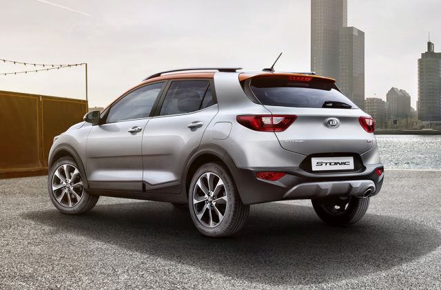 Dinamičan dizajn naglašen je prednjim spojlerom, istaknutim blatobranima i upadljivim donjim bočnim linijama. Klirens je veći nego kod Rija, čija platforma je iskorištena za ovaj model. Šef dizajna Peter Šrejer (Peter Shreyer) rekao je da je Stonic stilizovan u okvirima postojećeg dizajnerskog izraza ove marke, ali da su mu naglašeni branici, prtljažnik i pragovi.