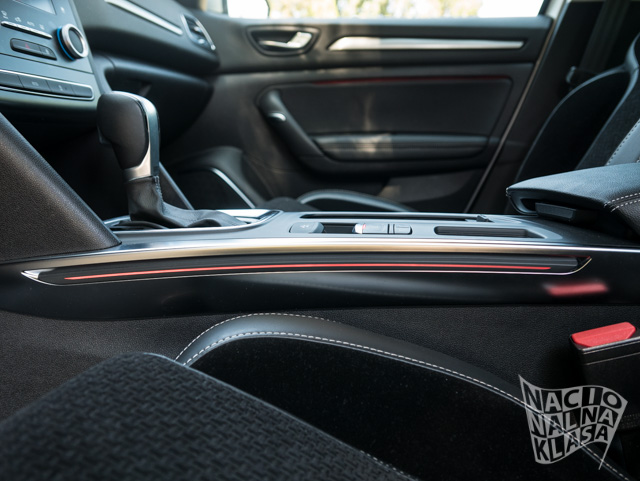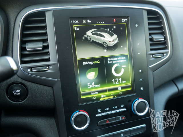 Za razliku od Talismana koji nudi i masažna sedišta ovde toga nema, ali su sedišta vrlo lepo profilisana i dosta su udobna a zaista lepo drže telo i u krivinama, kako u leđnom tako i u sedalnom delu. Karakteristika novog Megana je Multisens system koji vozilo poseduje ukoliko u istom postoji R-Link system. U test primerku se našao najjači paket kada je reč u multimediji pa je Multisens imao dosta podešavanja, ali ne i sva. Naime, ukoliko vozilo poseduje 4Control opciju, što ide uz GT verzije, tu je moguće podešavati i oslanjanje, dok se kod nižih paketa opreme podešavanja svode na personalizaciju unutrašnjosti, performase klima uređaja i servo volana. U svakom slučaju je ovo intresantna opcija koja pruža par dana zanimacije, ali se vozač posle par dana podešavanja navikne na određeni tip i retko kada ima potrebu da to menja. Generalno se podese izgled instrument table, ambijentalno osvetljenje prema ukusu vozača i to je sve, tako da ne verujemo da će vlasnici imati često potrebu da posegnu za promenom ovih opcija. Interesantno je to što se u podešavanjima nalazi i opcija za zvuk motora, pa se i to primeti kada se prebaci iz, recimo Eco režima u Sport. Same performance automobile se gotovo ne menjaju promenom dostupnih modova, već je sve manje više estetsko/akustična promena i gotovo neprimetna promena potrošnje goriva.