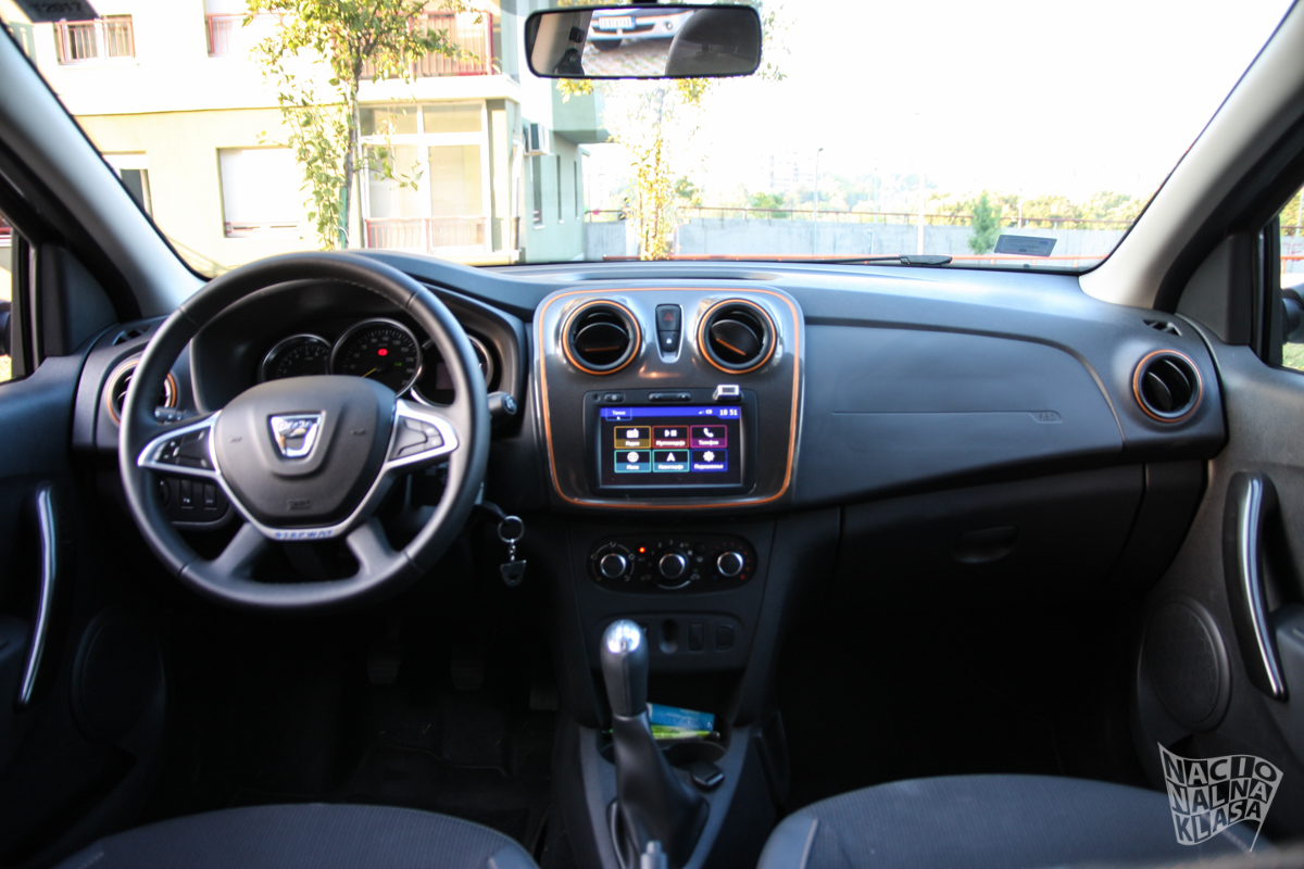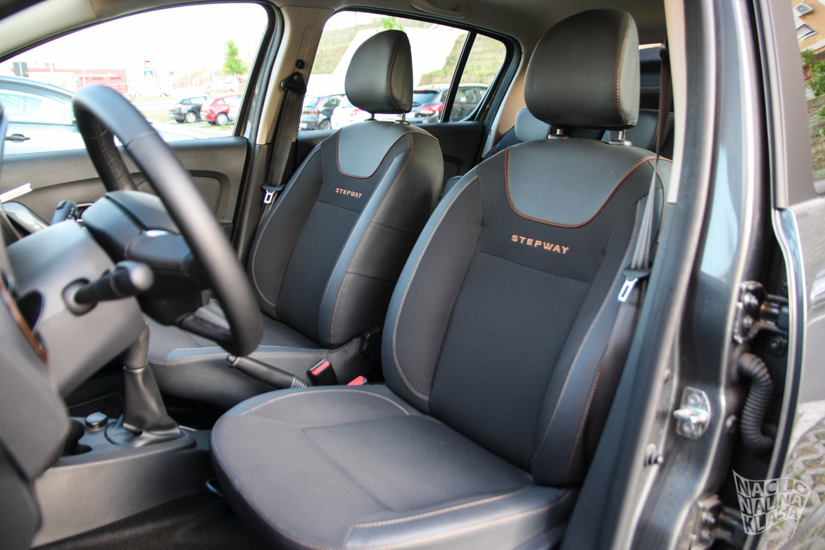 Kada smo već u unutrašnjosti automobila da se osvrnemo malo na prostor koji se nudi u Stepway modelu. Pozicija sedenja u Sanderu je karakteristična za Dačija modele, sedi se visoko i ne obećava baš neku preveliku udobnost. Ovo je kod Stepway-a još izraženije jer se generalno sedi na višoj poziciji pa je osećaj kao u nekom van-u ili slično. Ipak posle par kilometara smo zaključili da je pozicija sedanja zapravo vrlo dobra, a mišljenje nismo promenili ni nakon 800km. Do umora nije došlo čak ni kada se u jednom danu prešlo trećina navedene kilometraže, što je veoma pohvalno. Naime sedišta nisu ništa duža nego što je to inače slučaj kod Dačije, ali verovatno je udobnost veća zbog same više pozicije sedenja. Vrlo prijatno iznenađenje i pored činjenice da nema razlike u dizajnu sedišta.