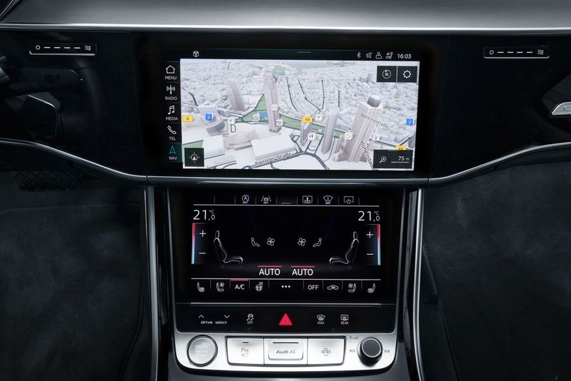 Nova generacija info zabavne Audi platforme MIB2+ obezbeđuje izuzetno detaljne navigacione mape sa detaljima visoke rezolucije i detaljnim 3D modelima brojnih gradova širom sveta.