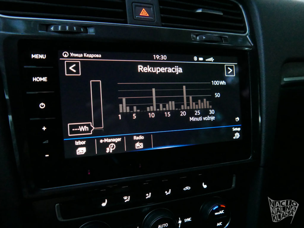 Možda je situacija u razvijenijim državama bolja, ali u Srbiji tj. u Beogradu na koji smo se fokusirali tokom testa, nema mnogo mesta za punjenje automobila. Čak i da imate takvo mesto u blizini, to su punjači koji će e-Golf napuniti u potpunosti za 4-5 časova. Punjenje na kućnom punjaču (onaj punjač koji je stigao uz automobil) traje oko 16 časova i taj vid punjenja je zaista poslednja odstupnica.