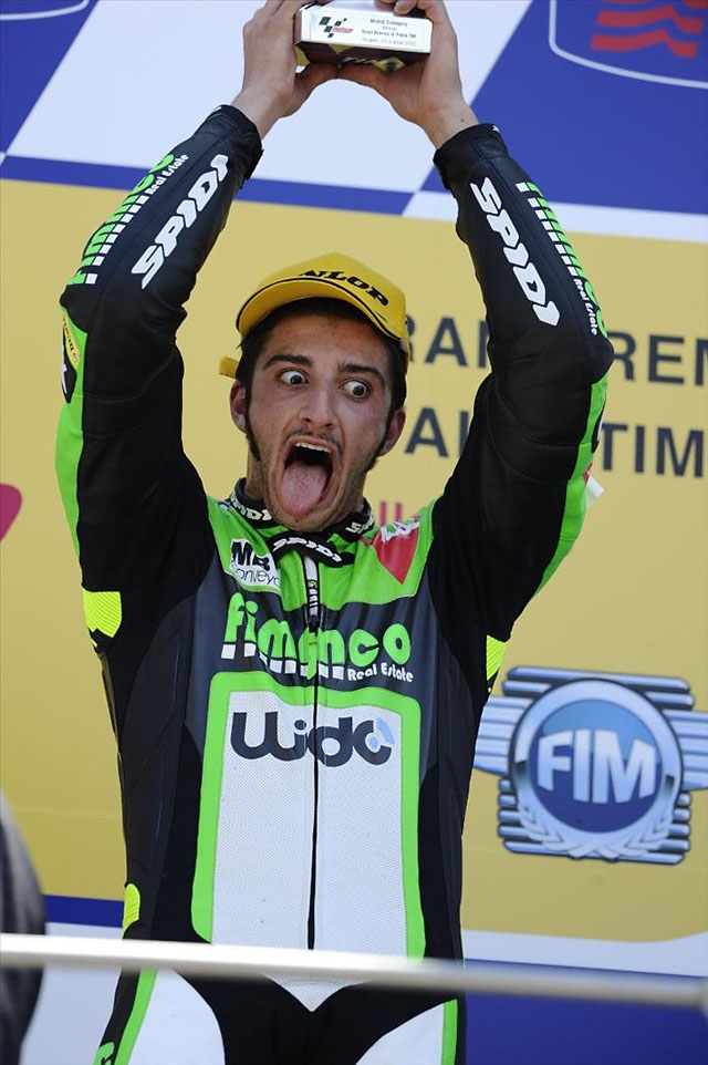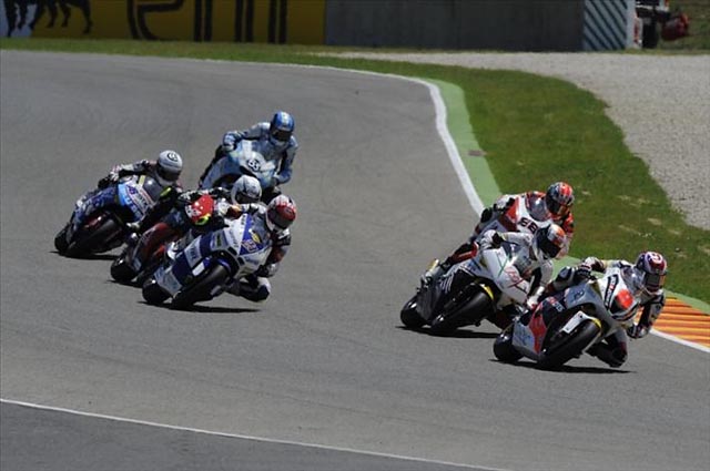 U poslednjoj preostaloj dvotaktnoj klasi po prvi put u karijeri trijumfovao je Marc Marquez na Derbi-ju sa samo četiri stotinke prednosti nad Terol-om, a zanimljivost je i to što su prva četvorica, koji su ostatak vozača ostavili daleko iza sebe, trku završili sa razlikom od oko jedne i po desetinke. Na startu trke su se lideri u šampioantu Espargaro i Terol izdvojili, ali su ih u osmom krugu pametnom vožnjom sustigli Marquez i Smith i tako se vozili skoro do kraja trke. Pobednik je u najboljoj tradiciji najslabije klase odlučen u poslednjem krugu pošto su se Marquez i zemljak mu Terol do poslednje krivine borili za pobedu. Do treće pozicije je stigao Espargaro i to nakon dosta borbe sa Bradley Smith-om.