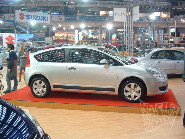 Konferencija za novinare na Citroen štandu je ukratko predstavila poznatu Citroen gamu čija je zvezda, uslovno, bio Citren C4 koji je skoro predstavljen u našoj zemlji. Model C4 je izložen u dve varijante – kupe i berlina. C4 kupe, po svemu sudeći, nema apsolutno nikakvu preglednost pozadi zvog ogromnih zadnjih stubova i prilično male staklene površine. Citreon je i podelio CD sa materijalom za novinare što je veoma koristan detalj obzirom da nam štedi vreme koje je potrebno da se taj materijal i objavi, a ono što je posebno zanimljivo je da na samom CD-u postoji spisak kontakt Citroen osoba za skoro sve Evropske zemlje, sem naravno za Srbiju i Crnu Goru. Čemu onda uopšte i služe takve informacije? Citroen je na sajmu pored C4 modela predstavio i C2 VTR, C3, C3 Pluriel, Xsara Picasso i C5 modele. Dodatno, u hali 14. se mogao naći štand sa Citroen dostavni i teretni program.