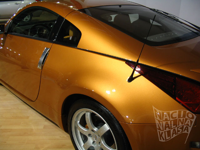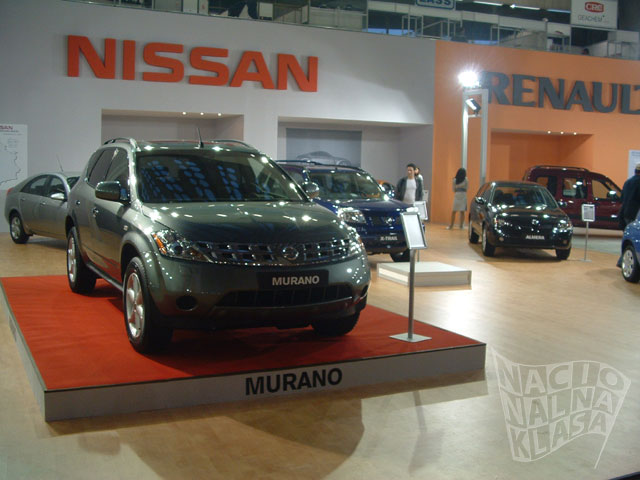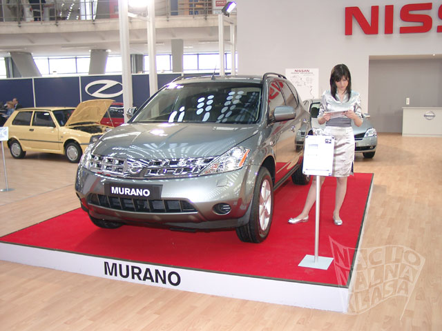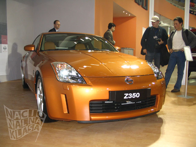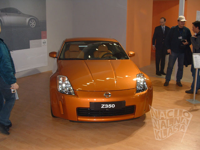 Nissan je ove godine predstavio dobar deo svoje game. Na štandu ste mogli da vidite prilično novi Murano model, X-Trail, Micra, Almeru, Primeru i svakako jedan od atraktivnijih automobila na ovom sajmu – 350Z. Jedino što autoru ovog teksta smeta kod tog automobila je prilično neukusno obojen interijer kao i sama boja automobila, ali sem toga automobil izgleda veoma mišićavo i brzo. I opet dolazimo do problema štanda zato što je niski sportski auto bio u samom ćošku kao da je želja izlagača bila da se auto ne vidi, dok je Murano – prilično veliki džip bio na posebno izdignutom postolju što je bilo potpuno nepotrebno – Murano bi dominirao štandom svojim dimenzijama, dok je 350Z trebao da bude na postolju. Činjenica je da se na ovakvim sajmovima pamte ekskluzivni modeli, a ne jeftini ili prodavani modeli – ako ne verujete pitajte nekog da li je video Mitsubishi ili Toyotu (verovatno će mali procenat posetilaca da se seti tih štandova) – tako da je šteta pa veoma redak 350Z nije bio više istaknut. Kako čujemo prodavci su tokom sajma bili predusretljivi prema pravim entuzijastima koji cene dobar sportski auto (čak su i startovali V6 3.5 motor da se čuje zvuk!), a to svakako moramo da pohvalimo i pomenemo.