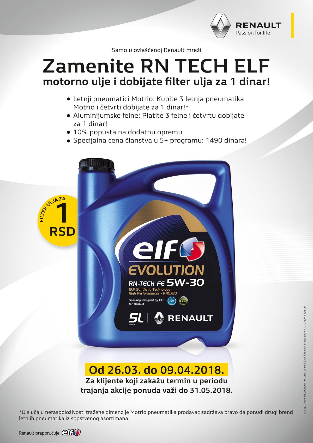 • Zamenite RN TECH ELF motorno ulje i dobijate filter ulja za samo 1 rsd