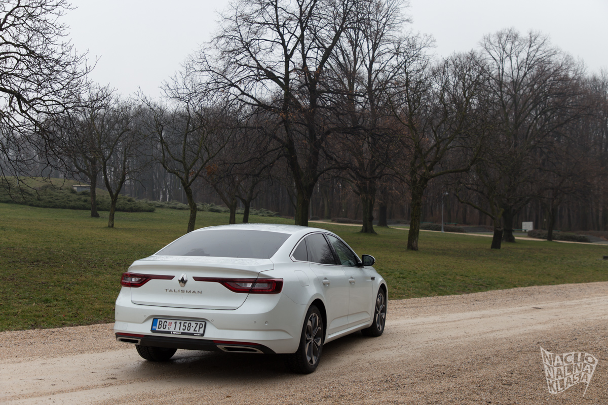 Već smo imali prilike da se detaljno upoznamo sa Talismanom, pa je tako spoljašnost ista kao i na prethodno testiranom modelu. Vrlo je interesantna odluka Renoa da krene agresivno u D segmentu, podsećamo se da je Laguna uvek bila interesantan model, ali svakako je bila tu negde sa standardnim konkurentima u D segmentu u vidu Ford Mondea, Toyote Avensis i sl. Premijum modeli Audija, Mercedesa i sličnih proizvođača nikada nisu bili meta Renooveog predstavnika u D segmetnu, ali sa Talismanom su se malo odvažili i zagazili i u ovaj segment, što se najviše ogleda u spoljašnosti automobila, ali i u tehnologiji i određenim elementima enterijera koji prosto odišu luksuzom.