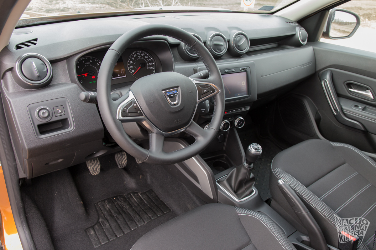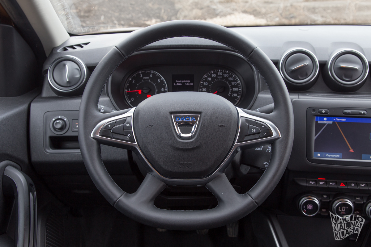 Upravljač, kada su u pitanju vozila sa bogatijim paketima opreme, je opšiven kvalitetnijim materijalom, a sam obruč je deblji što je još jedan od elemenata koji Daster, korak po korak, udaljavaju od ostalih Dačija modela, a približavaju ga dosta skupljim alternativama. Novi taster na centralnoj konzoli su takođe novog dizajna iako u ovom slučaju kvalitet plastike nije povećan koliko bi njihov izgled možda mogao sugerisati.