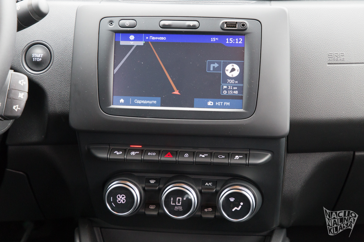 Ergonomija je dramatično bolja, tako da su svi propusti na koje smo isticali sada popravljeni. Pozicija info-zabavnog ekrana je sada pri samom vrhu centralne konzole što je omogućilo da se komande klima uređaja takođe pomere na gore i sada nije potrebno „zaroniti“ ispod konzole da bi ste promenili odredište na navigaciji ili promeniti temperaturu. Da, treba reći da je klima uređaj digitalni, što je još jedan novitet kada je u pitanju Dačija.