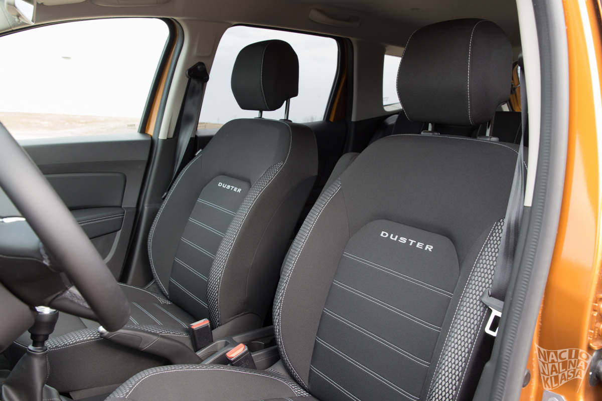 Glavni „trn u oku“, kada je naša redakcija u pitanju, su do sada bila sedišta. Na skoro testiranom Sandero Stepway modelu  smo primetili da su sedišta nešto bolje konstrukcije nego ranije, ali je sedalni deo i dalje bio kratak. Sada, sa novim Dasterom, sedišta su produžena za 2 cm što u kombinaciji sa boljom konstrukcijom i bočnom potporom menja situaciju dramatično. Vozačevo sedište se sada ima veći hod pomeranja po visini (6 umesto dosadašnjih 4cm), tako da je daleko lakše naći idealnu sedalnu poziciju čemu doprinosi i upravljač podesiv po visini i dubini.