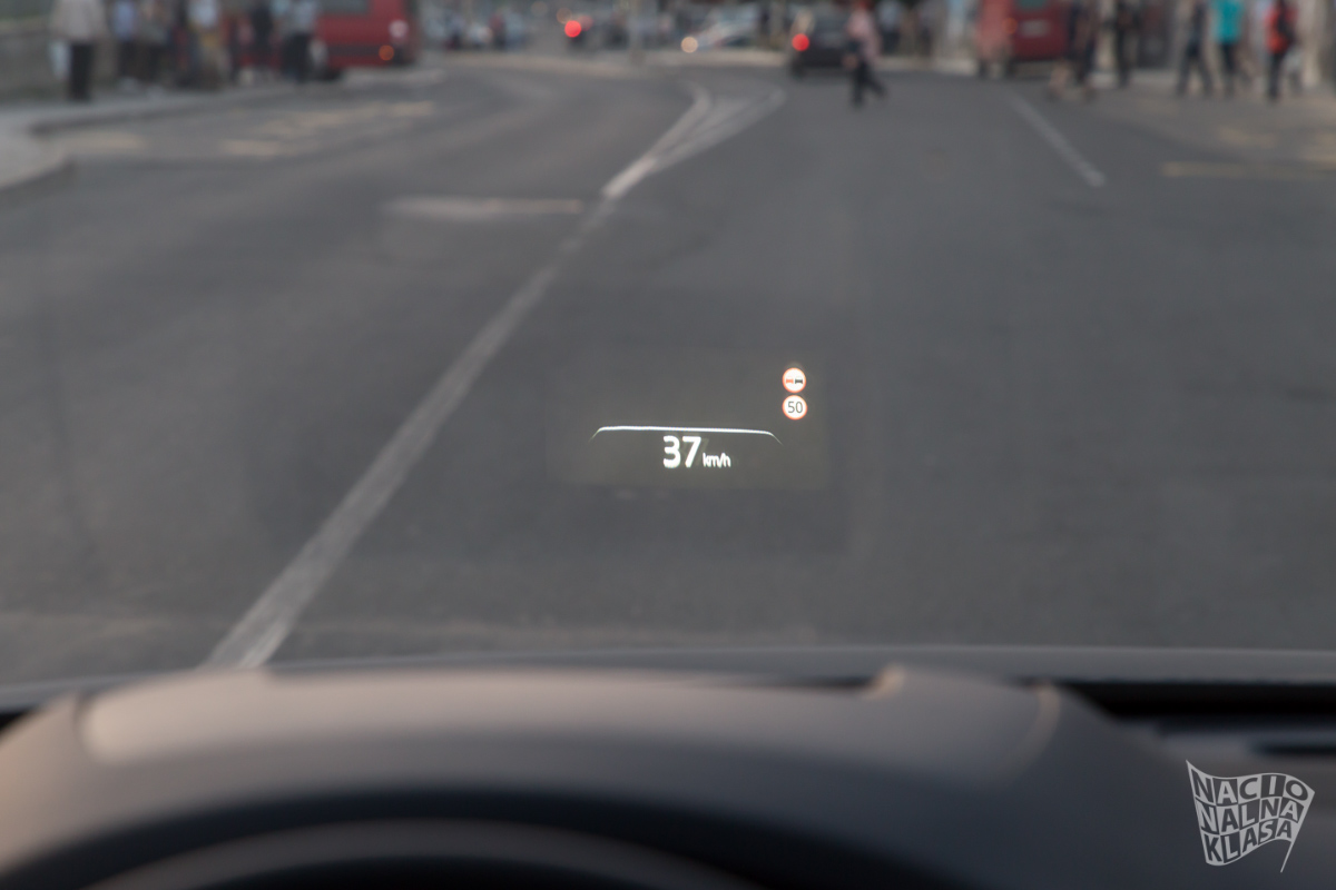 Novi prikaz bitnih vozačkih informacija na vetrobranu (HUD) je sa novom generacijom zaista prikaz na vetrobranu, a ne na pomoćnom panelu. Ovo unapređenje je jedno od većih, kada se govori o asistencijama vozaču i koje će vam često skrenuti pažnju da ste zapravo brži od ograničenja jer odlična akustična izolacija i prilično udobno ogbiljenje to vešto kriju od putnika.