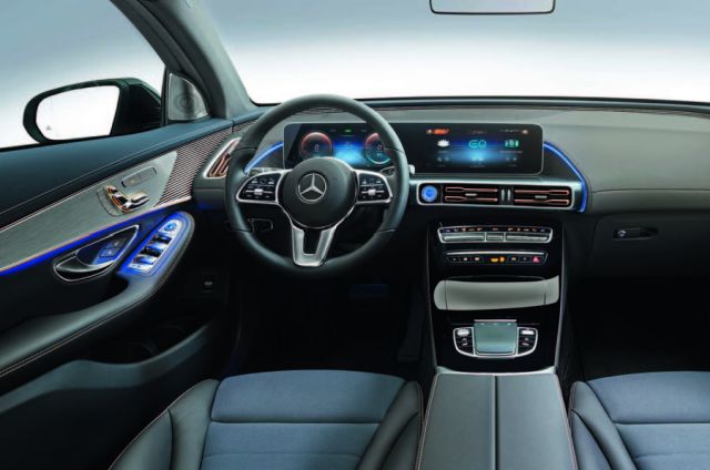 EQC ima unapređenu verziju kabine iz GLC, a neki njeni delovi pojaviće se u ovom restilizovanom modelu sledeće godine. Tu je nova centralna konzola sa digitalnim instrumentima i multimedijalnim panelom, prerađeni su ventilacioni otvori, a nov je i multifunkcionalni upravljač sa površinama osetljivim na dodir unutar horizontalnih prečki. EQC ima mesta za pet putnika i prtljažnik veći za 79l nego GLC – okruglo 500l.