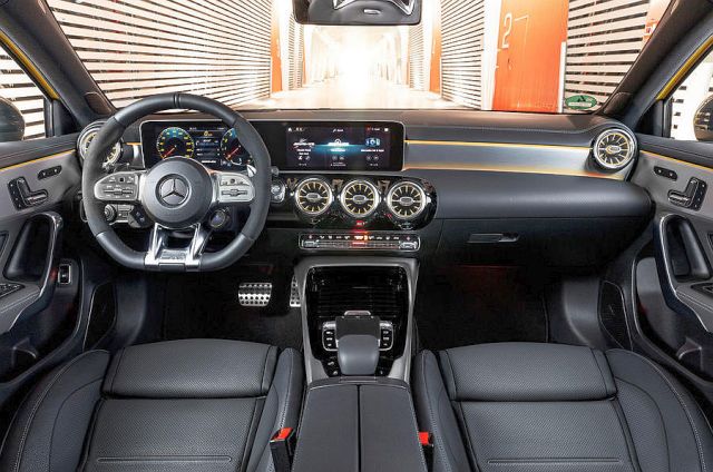 Kabina je unapređena u odnosu na standardni hečbek novim presvlakama za sedišta, AMG upravljačem sa kontrolama na tačpedu i AMG grafikama digitalnih instrumenata uključujuči Supersport mod sa velikim centralno smeštenim obrtomerom.