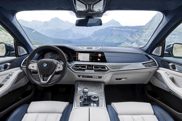 Izgled centralne konzole sličan je ostalim novijim BMW modelima, a X7 se izdvaja po površinama od metala i drveta, ambijentalnom svetlu i kristalima ukrašenim menjačkim selektorom. BMW iDrive 7.0 multimedijalni sistem funkcioniše preko dva ekrana dijagonala 12,3 inča.