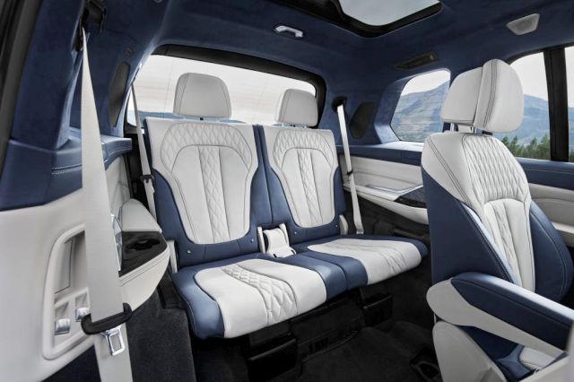 Novi X7 dugačak je 5.151mm, širok 2.218mm i visok 1.805mm, što znači da je neznanto veći od Range Rovera. Sa masom od 2,4 tone u najlakšoj varijanti, ovo je najteži serijski automobil koji je BMW ikada napravio. Opcije za felne idu do 22 inča, prednja i zadnja LED svetla su deo standardnog paketa, a dominantan izgled zaokružuje se staklenim panoramskim krovom.