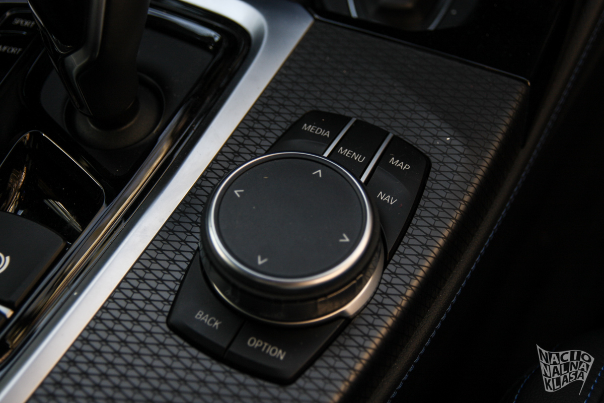 Odlično je što za sve bitne stvari postoji fizički taster, pa nije potrebno za svaku (bitnu) sitnicu pipkati ekran. Pored ovog ekrana, u instrument tabli se nalazi još jedan. Digitalni prikaz instrumenata je nešto što se danas očekuje u premium segmentu, pa je ova BMW izvedba izuzetno dobra. Zanimljiv detalj su hrom lukovi oko prikaza na ekranu, ali je mnogo bitnije da je sve veoma funkcionalno i pregledno.