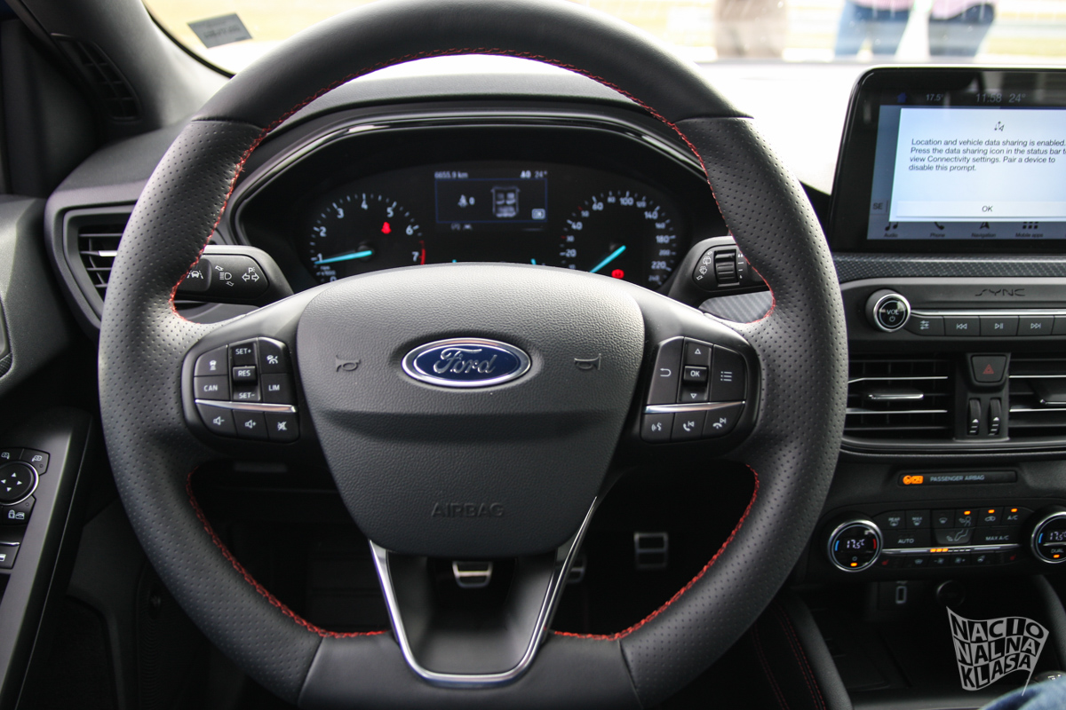 Vožnja po stazi je pokazala da je Ford i dalje nudi vrlo dobro podešeno ogibljenje koje je među agilnijim u segmentu. Adaptivno ogibljenje na stazi donosi preko potrebnu čvrstoću, a kada smo bili za volanom 1.5T ST-Line modela ono je omogućilo da se iskoristi 182KS koliko razvija turbo trocilindraš, koji takođe nudi i mogućnost rada na dva cilindra kako bi se smanjila potrošnja, kada vozač ne zahteva punu snagu agregata.