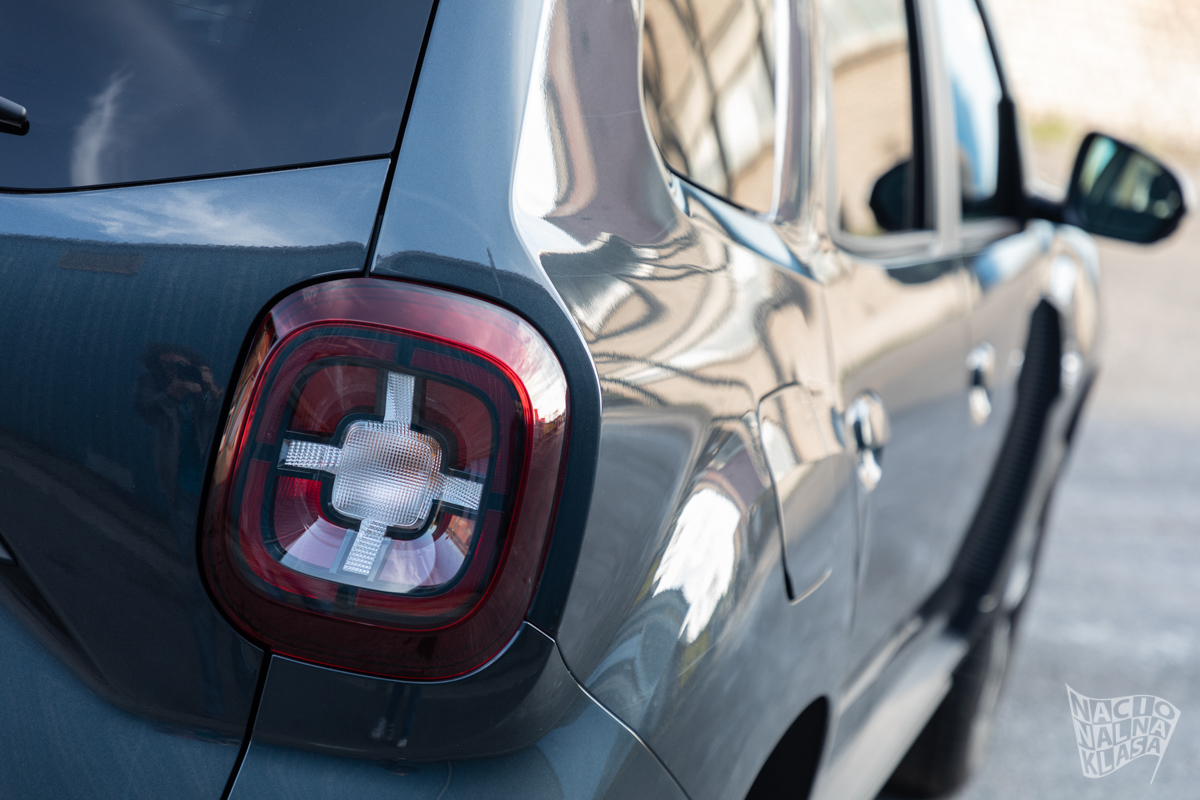 Zadnja strana automobila je vizuleno najupečatljivija i dosta modernija uprkos činjenici da ništa epohalno nije promenjeno, ali sitnice su čudo. Te sitnice su upravo zadnja svetlosna grupa koja sada ima četvrtasti dizajn i ostavlja daleko bolji vizeulni pečat u poređenju sa prethodnim modelom kome je ovaj deo automobila bio najslabija strana sa aspekta dizajna. Dodaci u vidu plastičnih umetak se podrazumevaju i sa ove strane vozila, a u Dačiji su se dodatno potrudili pa su za ovaj model sakrili kuku za vuču. Možda je ovo sitan detalj, ali očigledno je da Dačija sigurnim korakom ide u pravcu gde će im dizajn biti jedan od aduta.