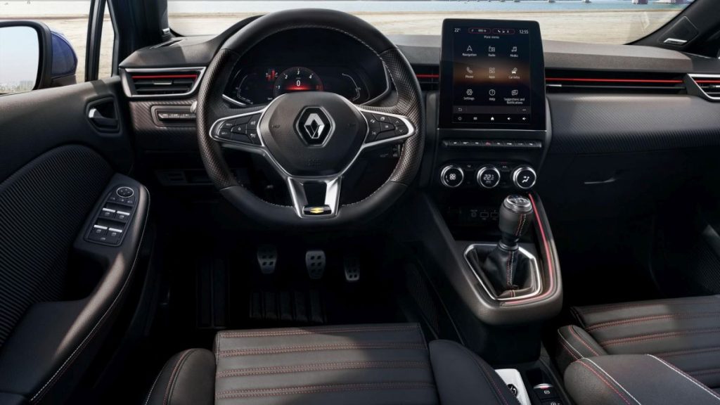Clio prelazi na digitalnu instrument tablu, sa ekranima od 7 ili 10 inča. Veći ekran može da prikaže i podatke satelitske navigacije između obrtomera i brzinomera. Sistem je kompatibilan sa Apple i Android uređajima. Dizajneri su zadržali fizičke rotacione kontrole klima uređaja i grejanja u donjem segmentu centalne konzole.